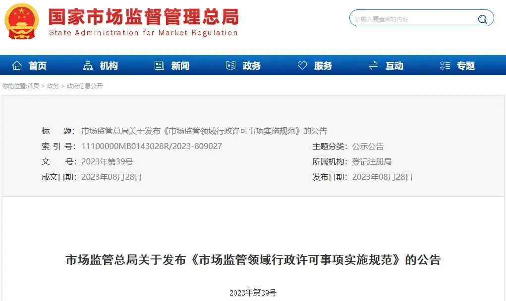 為積極建設(shè)全國統(tǒng)一大市場,持續(xù)優(yōu)化營商環(huán)境,深入推進行政許可標準化、規(guī)范化、便利化,不斷提高審批效率和監(jiān)管效能,促進經(jīng)濟社會高質(zhì)量發(fā)展。近日,市場監(jiān)管總局制定出臺《市場監(jiān)管領(lǐng)域行政許可事項實施規(guī)范》(以下簡稱《實施規(guī)范》)。 ?   《…