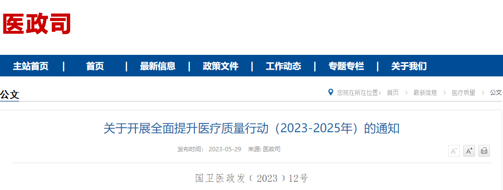 為深入推進(jìn)健康中國建設(shè),進(jìn)一步深化醫(yī)藥衛(wèi)生體制改革,全面提升醫(yī)療質(zhì)量安全水平,建設(shè)中國特色優(yōu)質(zhì)高效的醫(yī)療衛(wèi)生服務(wù)體系,保障人民群眾健康權(quán)益,5月29日,國家衛(wèi)生健康委、國家中醫(yī)藥局聯(lián)合發(fā)布《關(guān)于開展全面提升醫(yī)療質(zhì)量行動(2023-202…